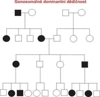Následující obrázek je ukázkou rodokmenu s výskytem gonozomálně dominantní dědičnosti.