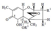 - deoxynivalenol, R1 = OH, R2 = H, R3 = H