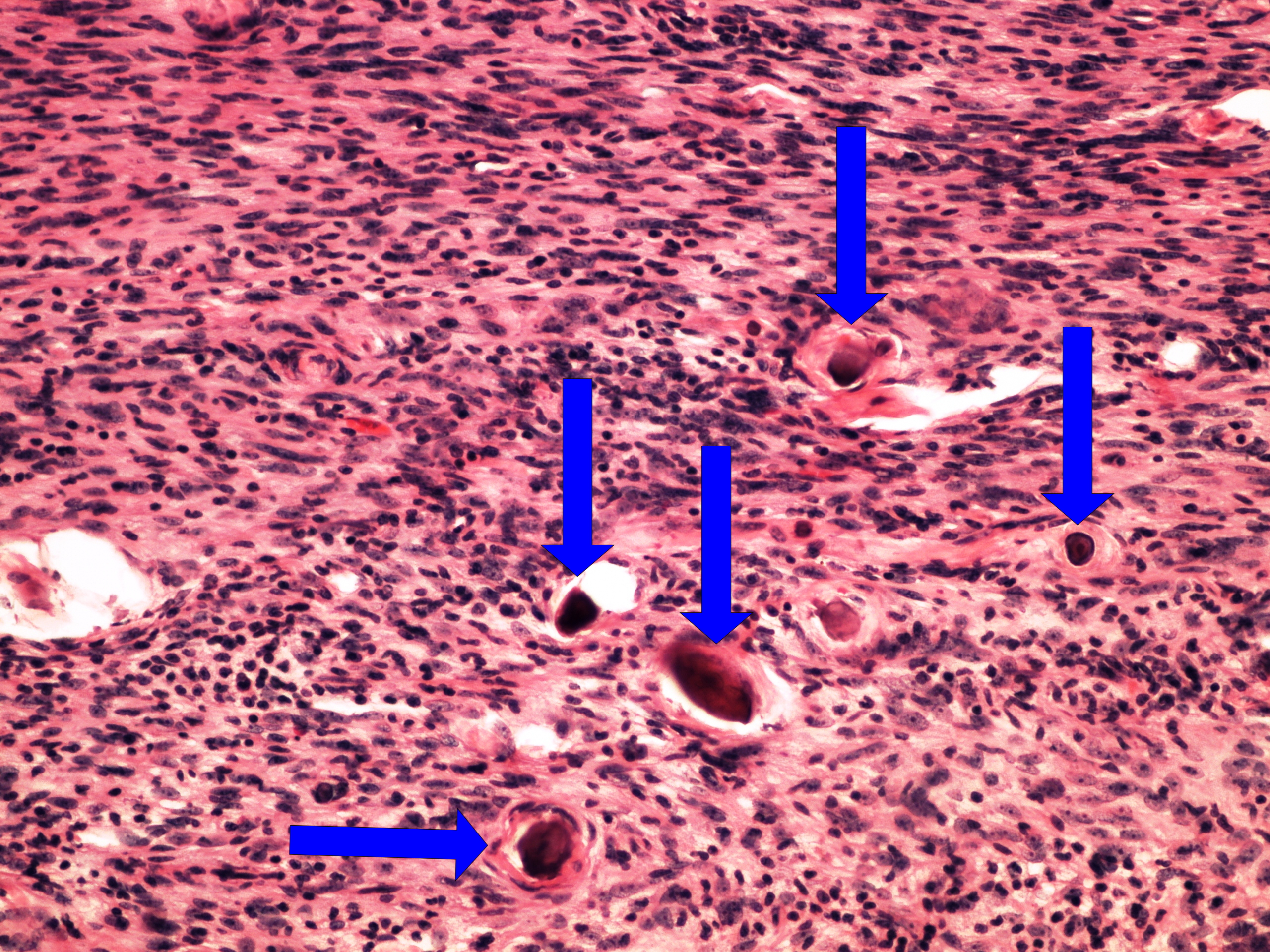 Preparát č.9 a č.10 - meningeom s psammomaty