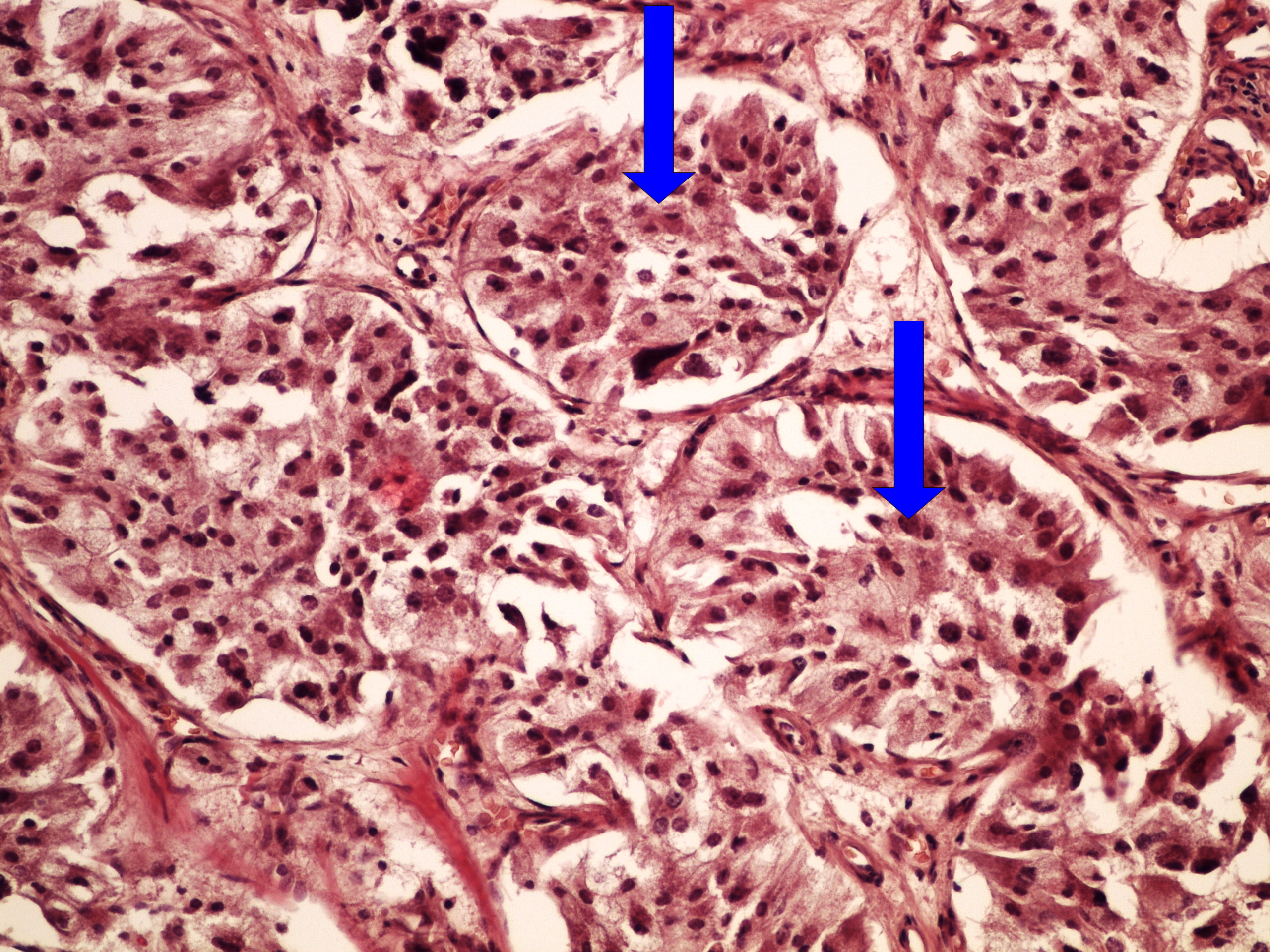 - nádorové epitelové čepy s atypiemi