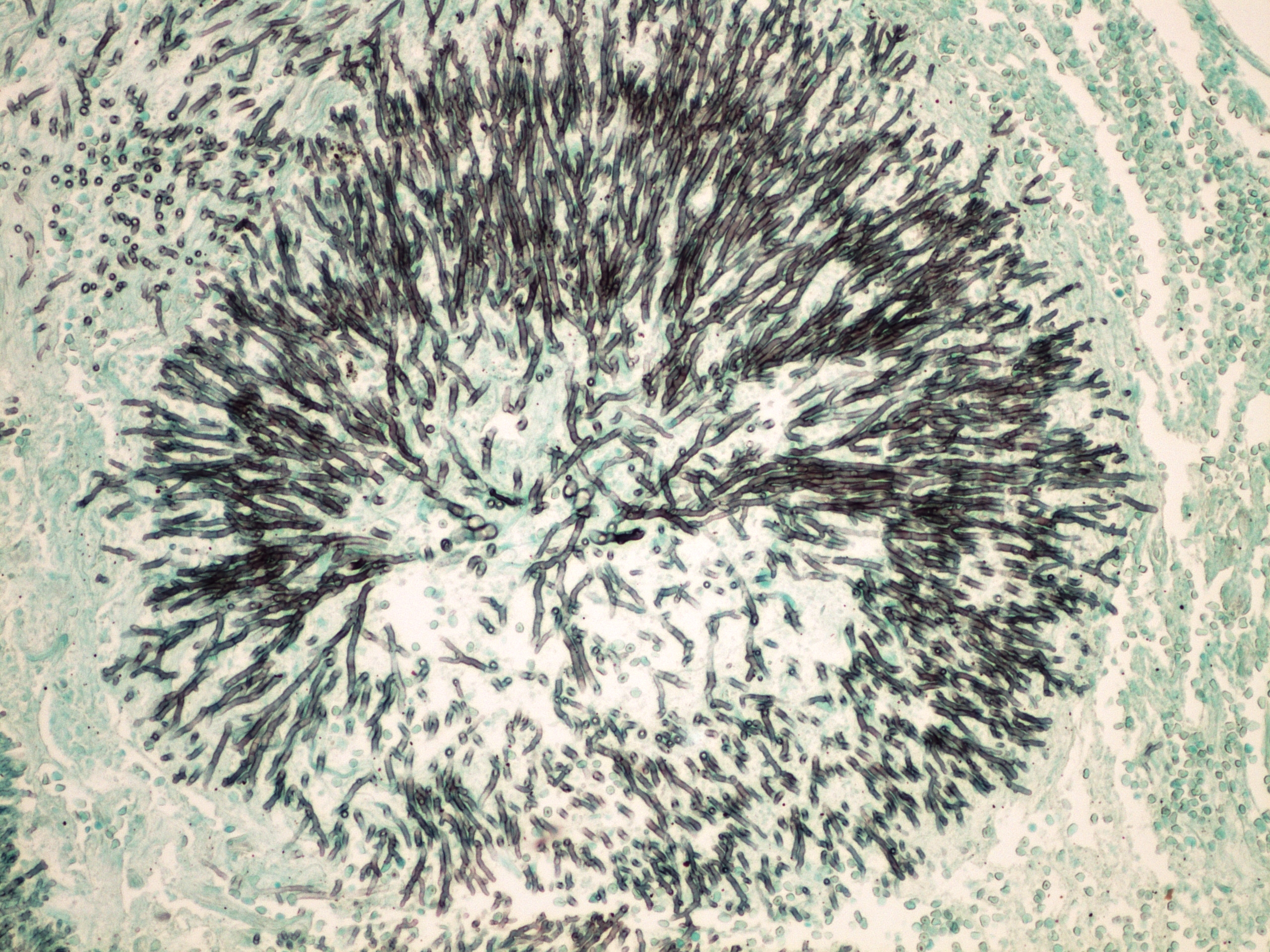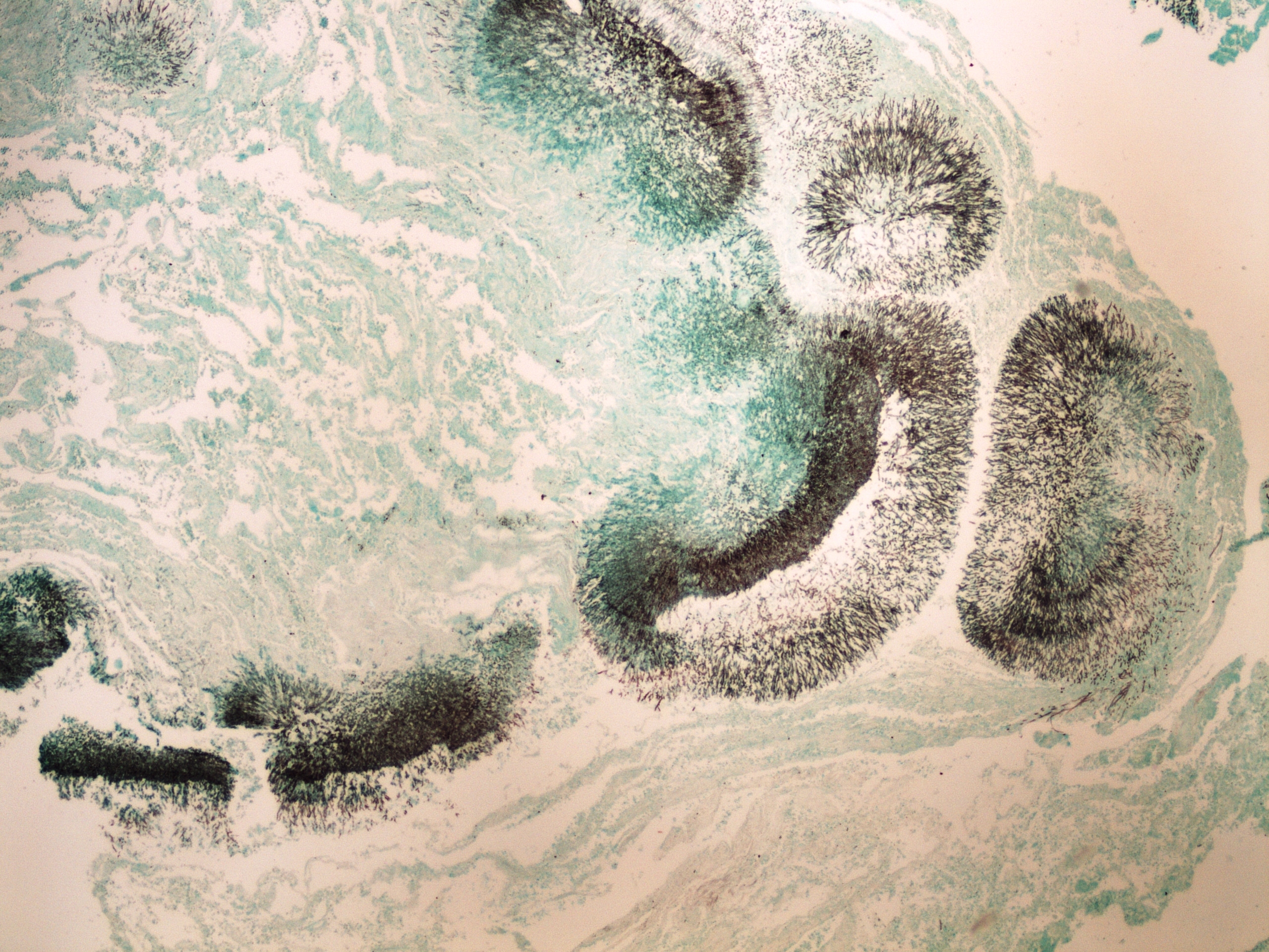 Preparát č.7 a č.8 - stříbření dle Grocotta (průkaz plísně)