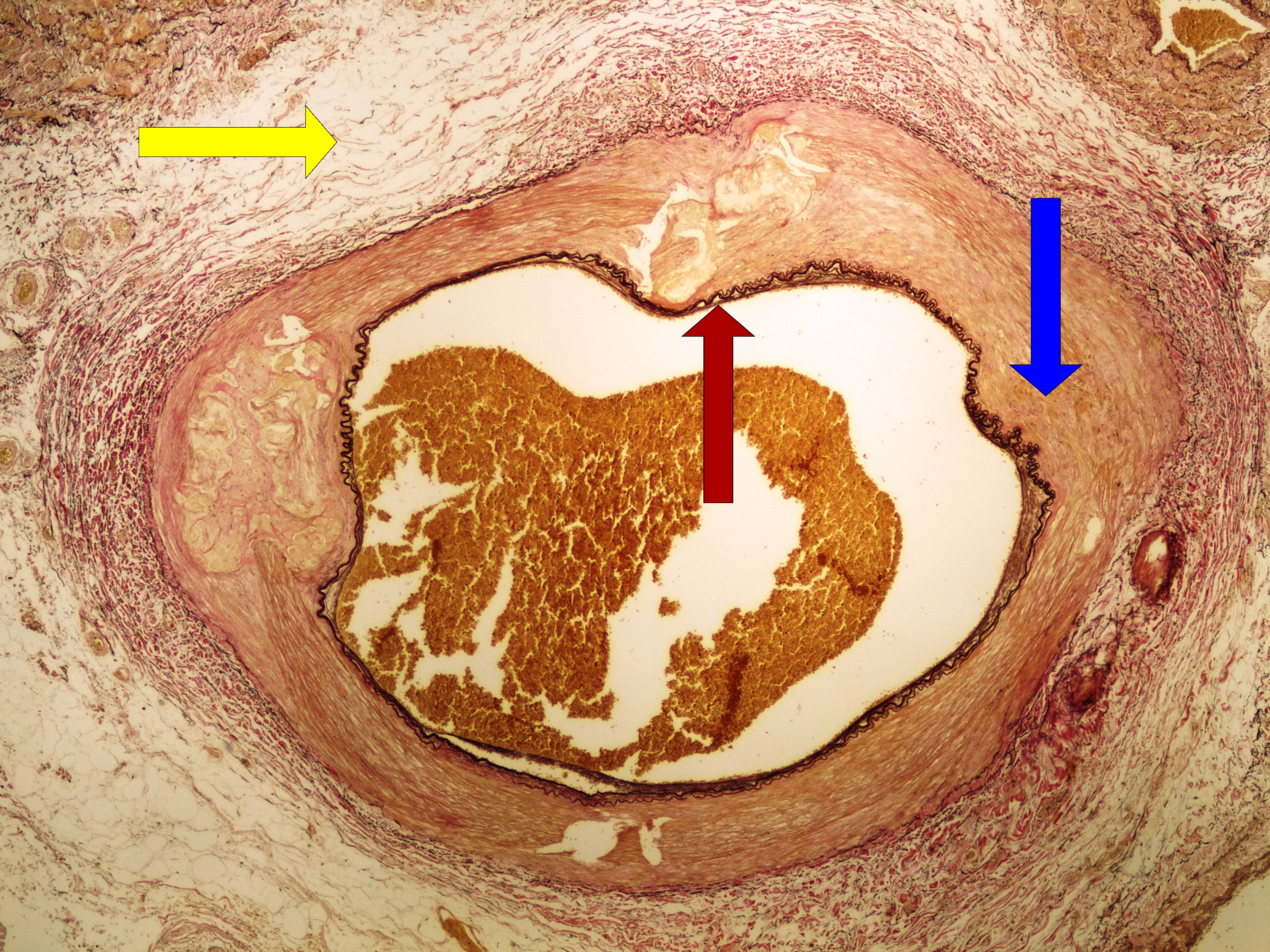 Preparát č.1 a č.2 - barvení van Gieson (elastická vlákna)
