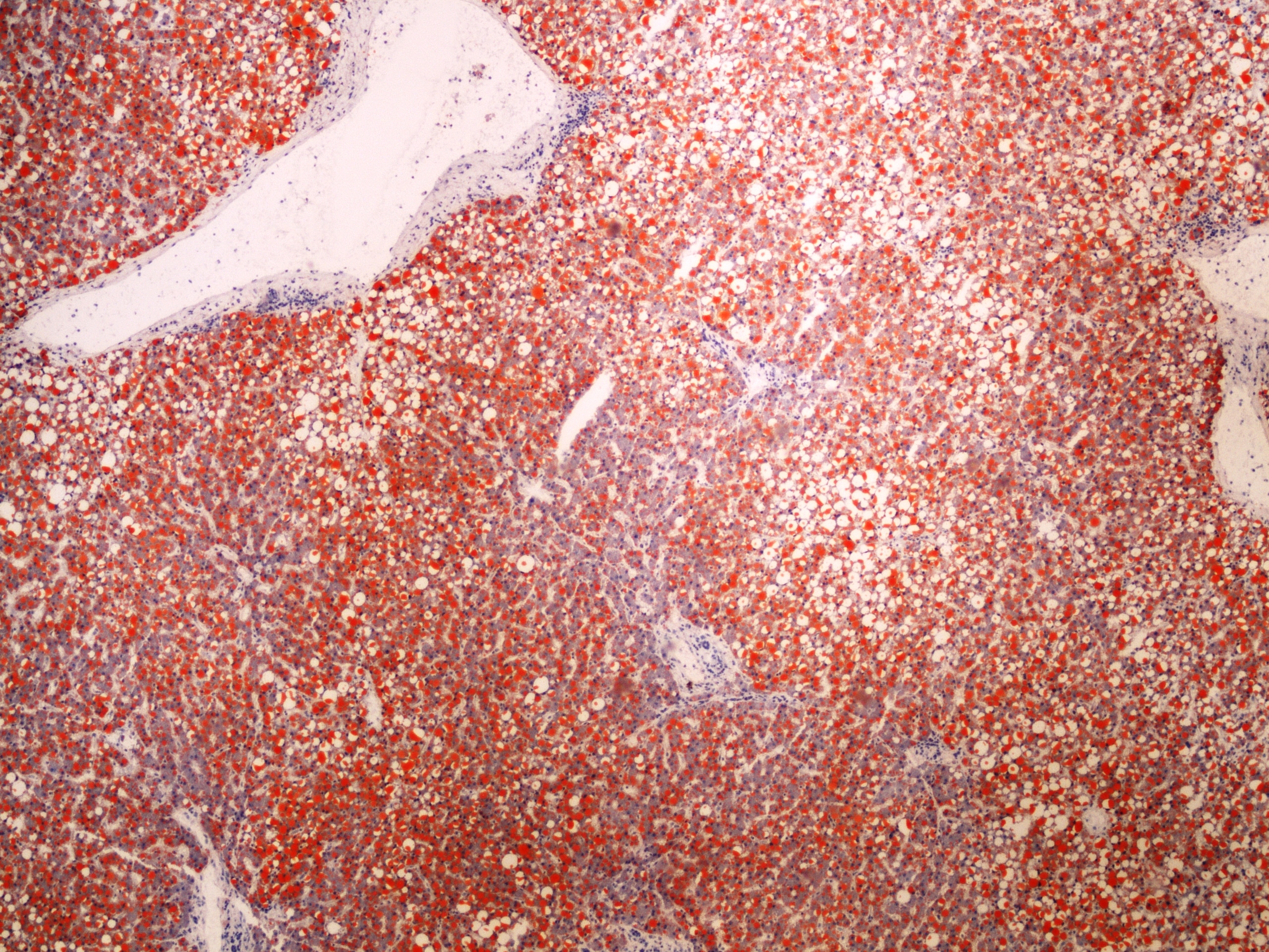 - intracytoplazmatické tukové vakuoly v hepatocytech