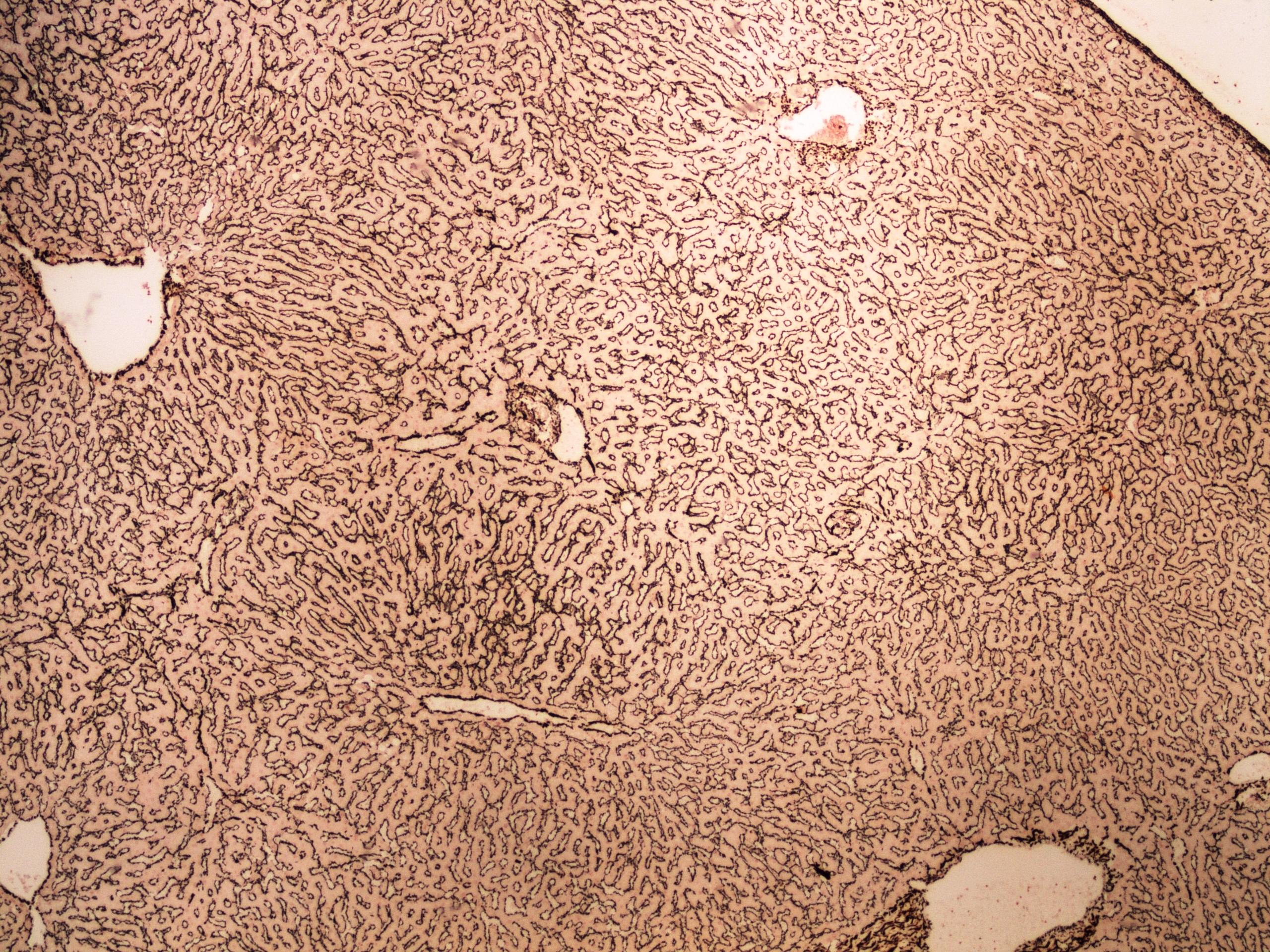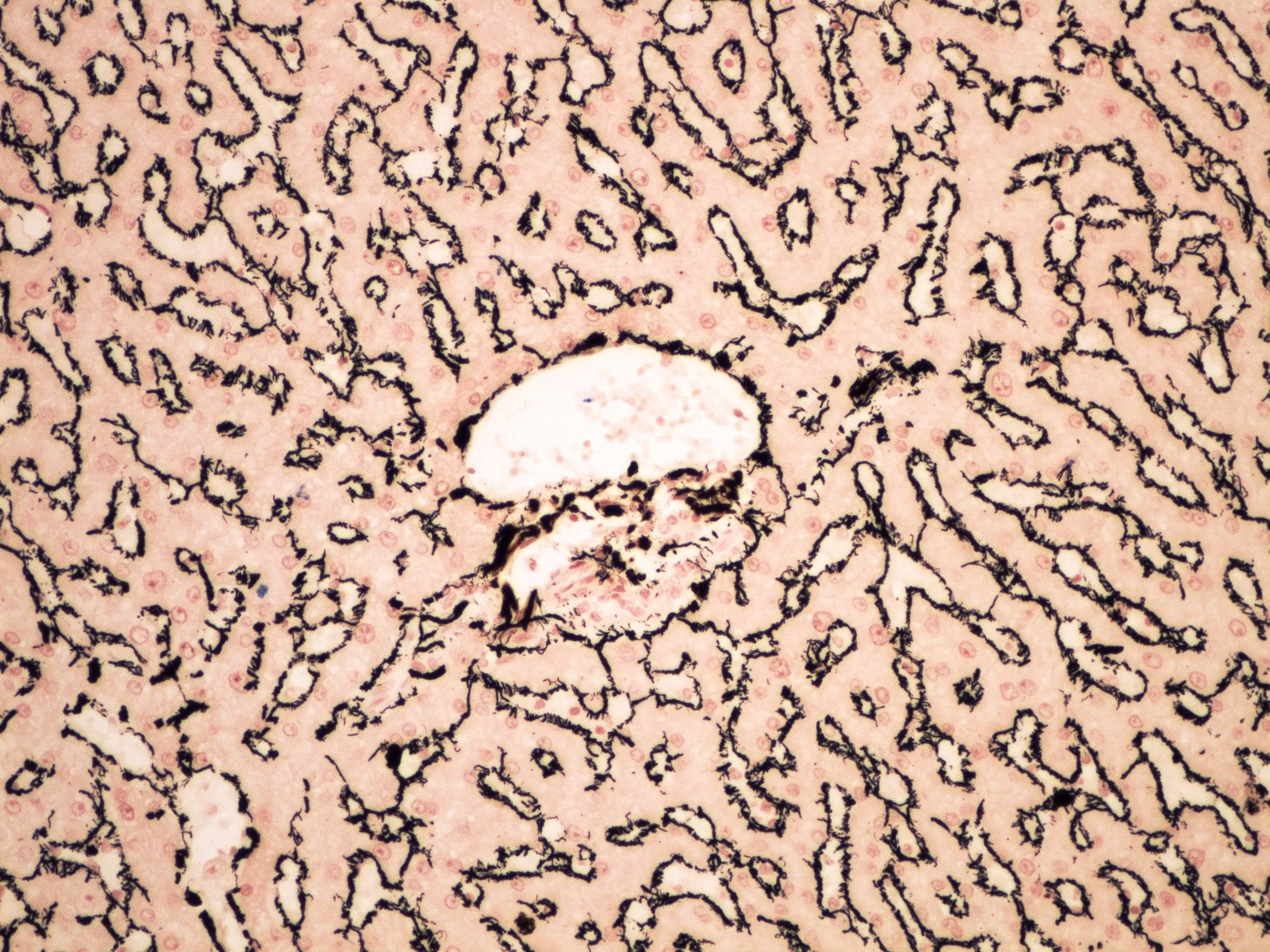 Preparát č.13 a č.14 - barvení na retikulární vlákna (játra)