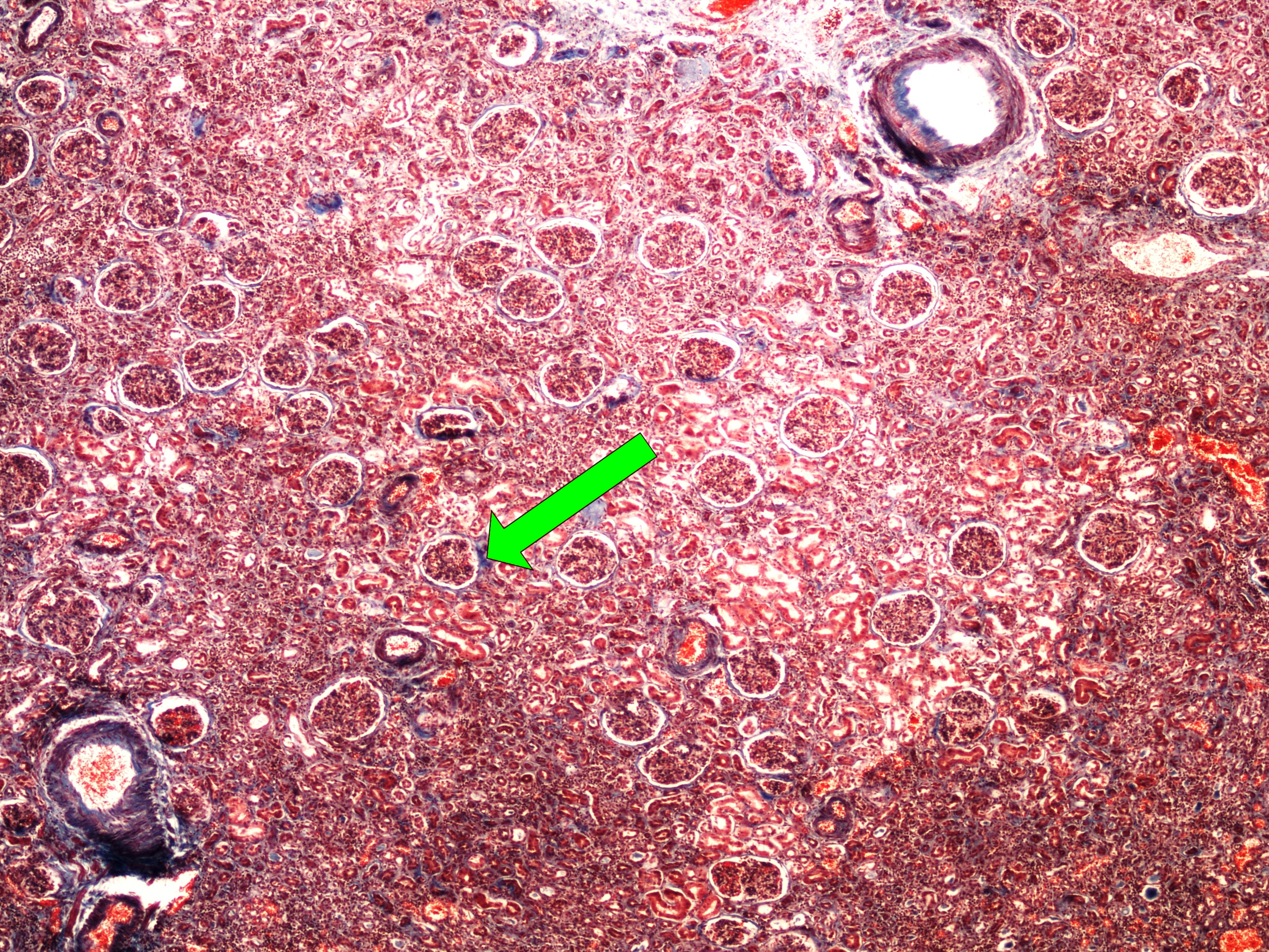 Preparát č.9 a č.10 - barvení modrý trichrom (ledvina)