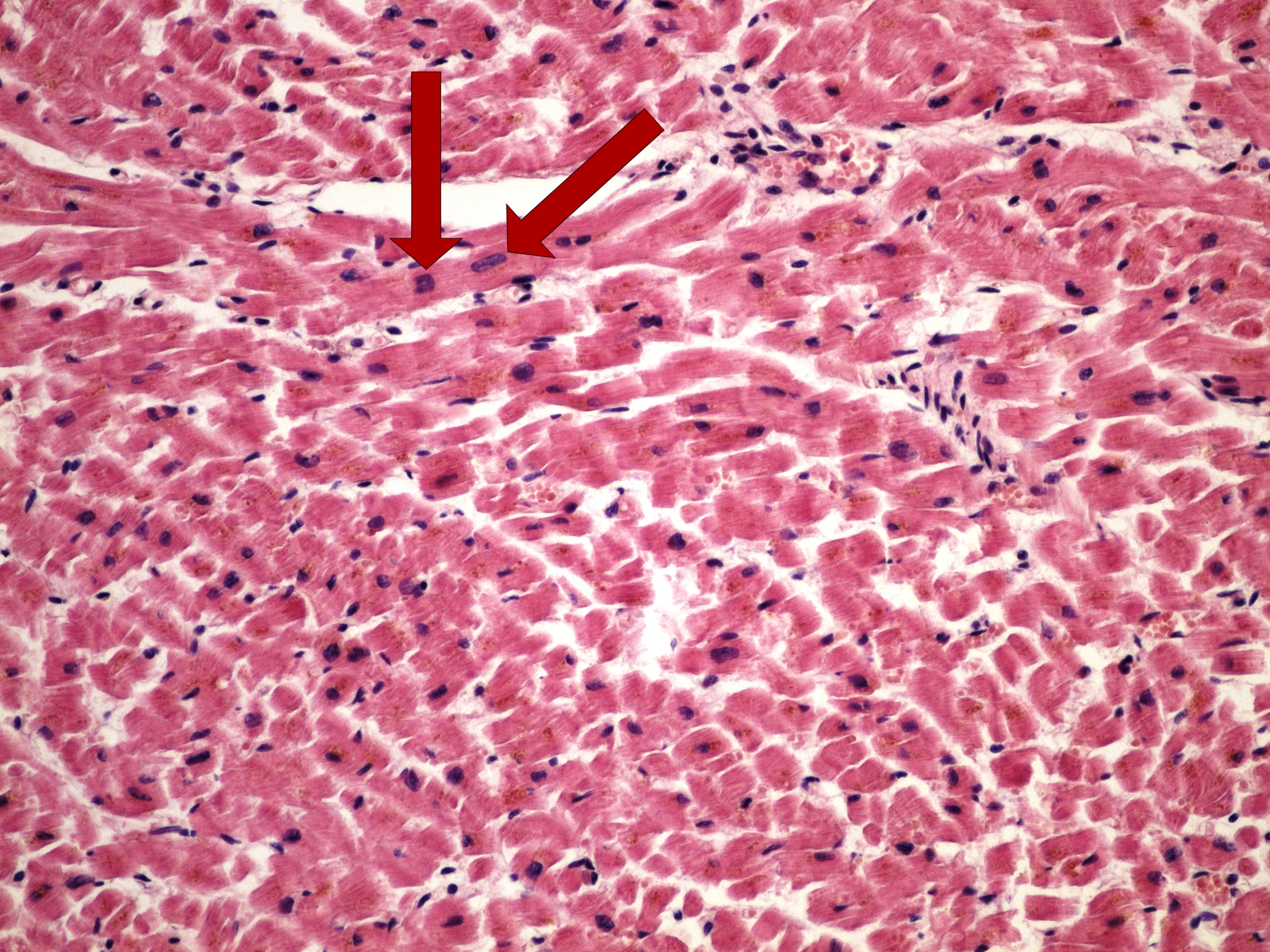 - krabicovitá jádra kardiomyocytů
