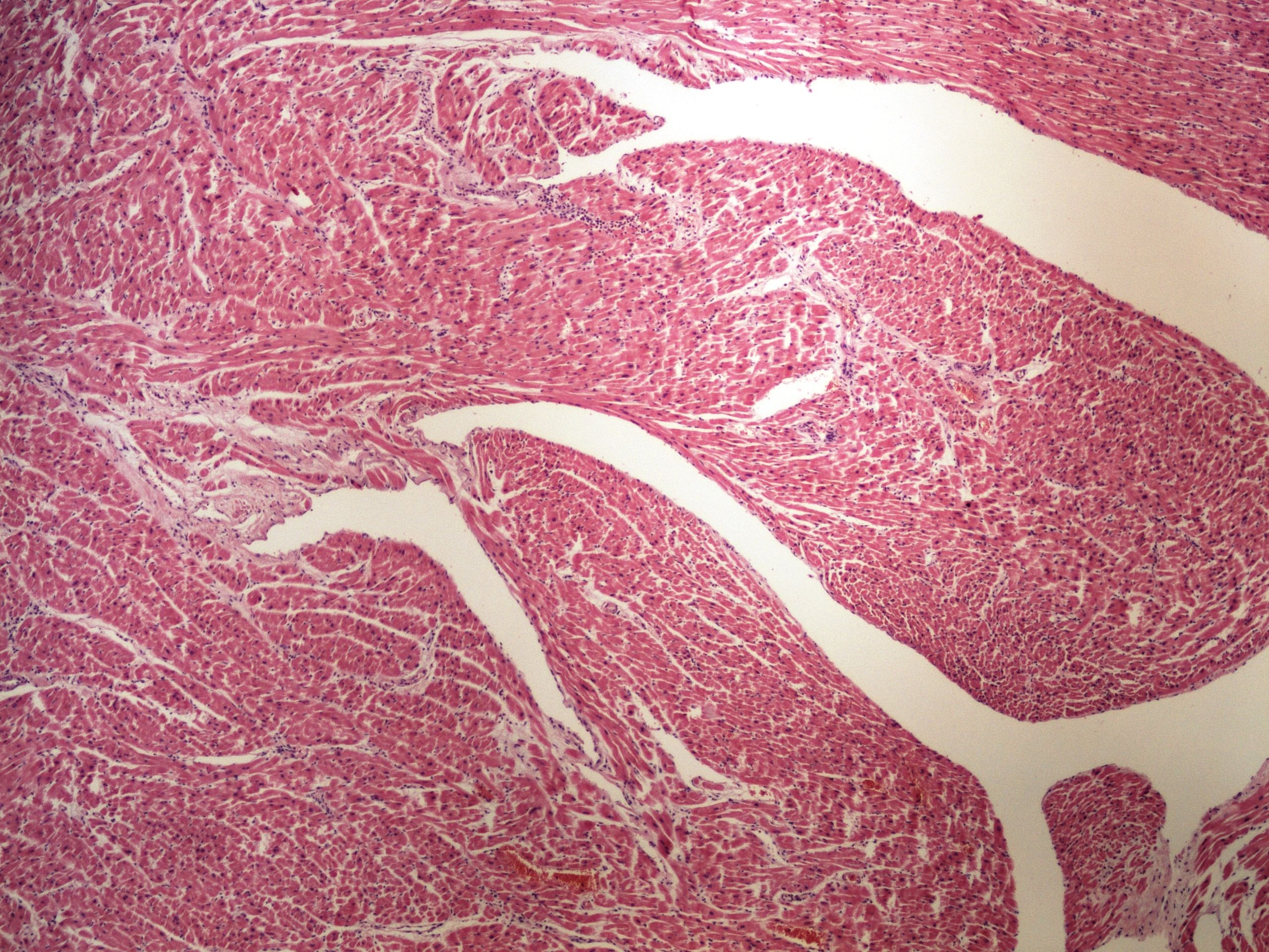 Preparát č.3 a č.4 - myokard (HE)