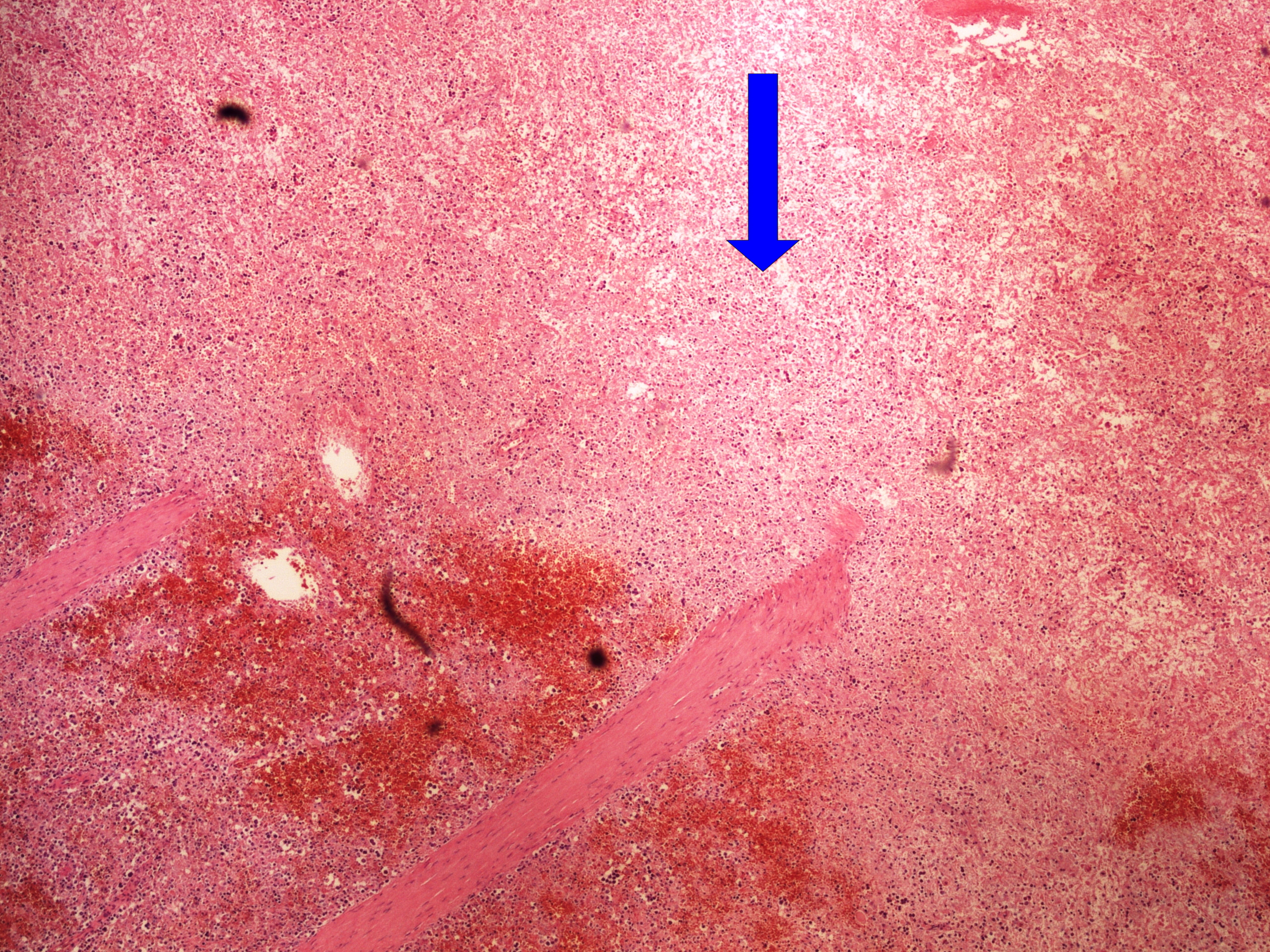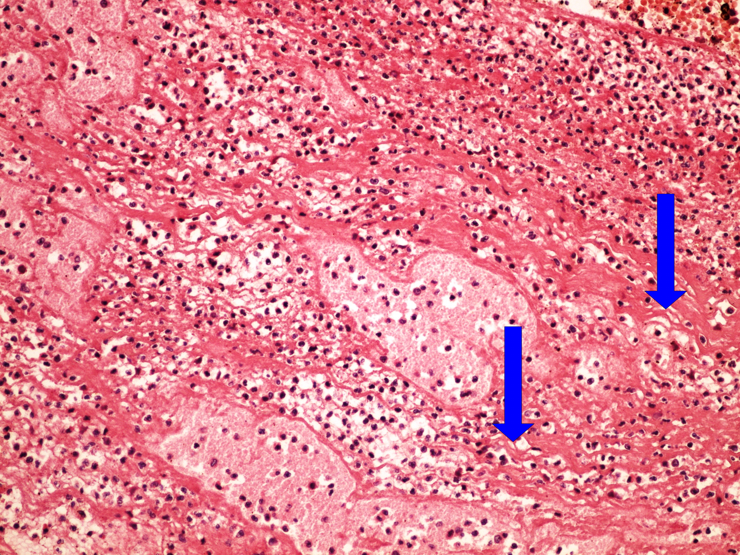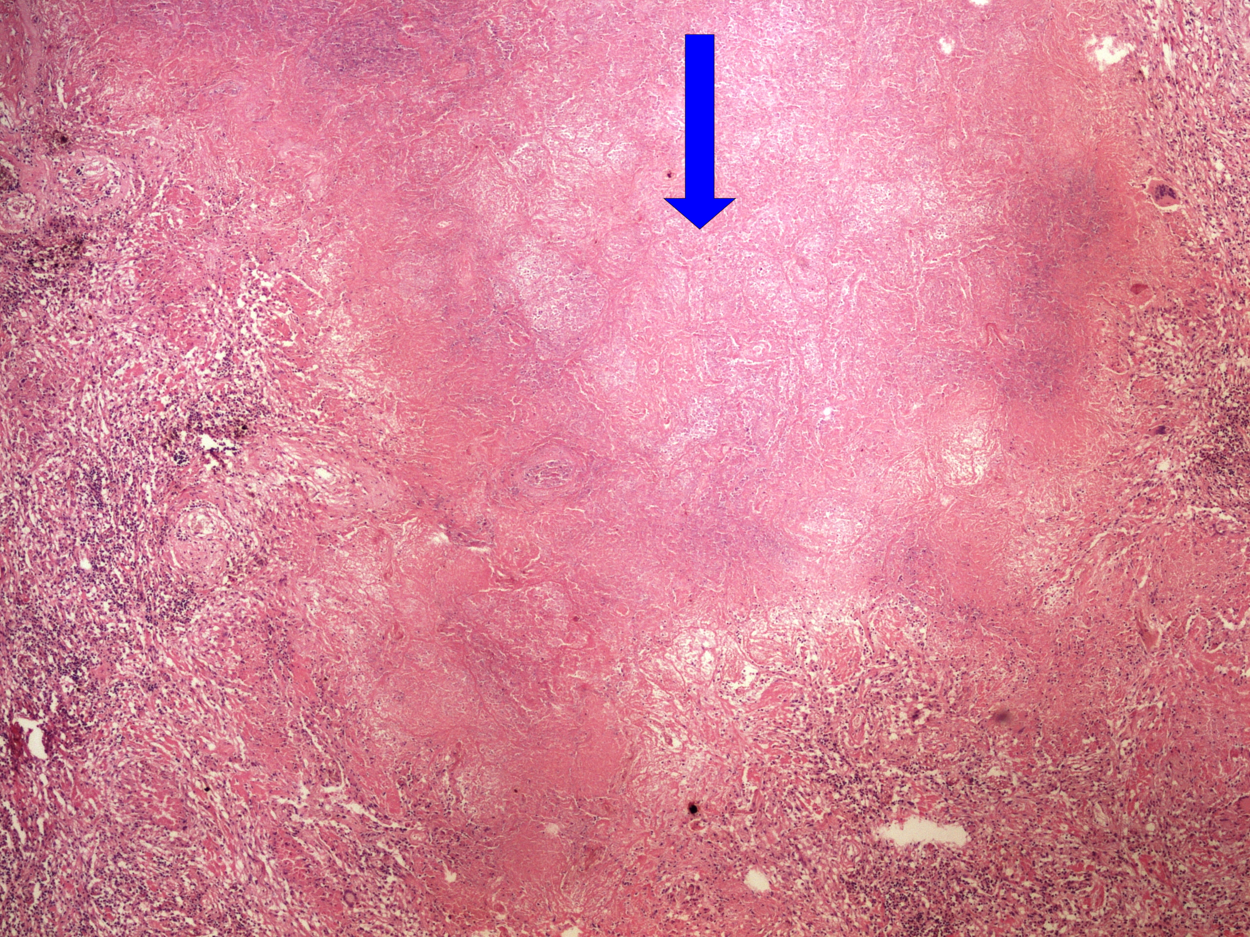 Preparát č.15 a č.16 - kaseózní nekróza plic