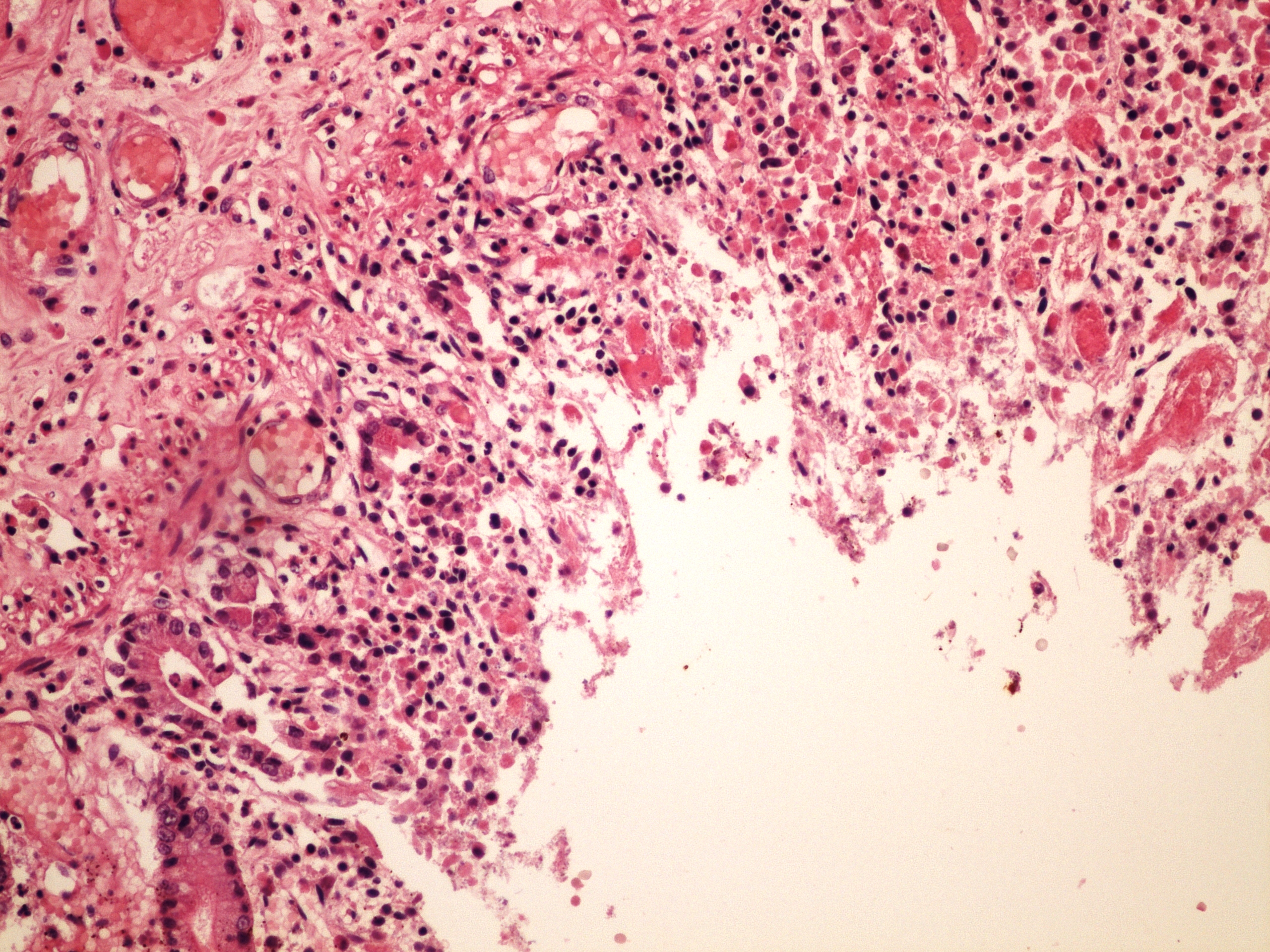 Preparát č.13 a č.14 - hemoragická infarzace střeva