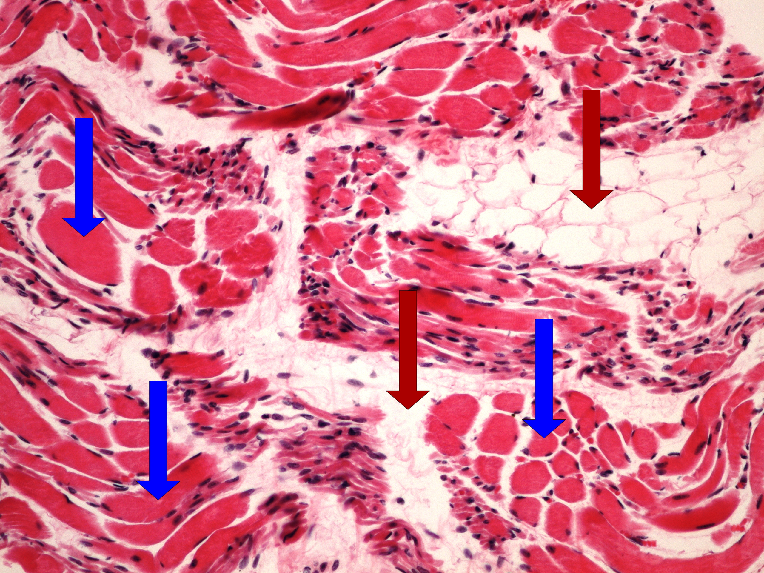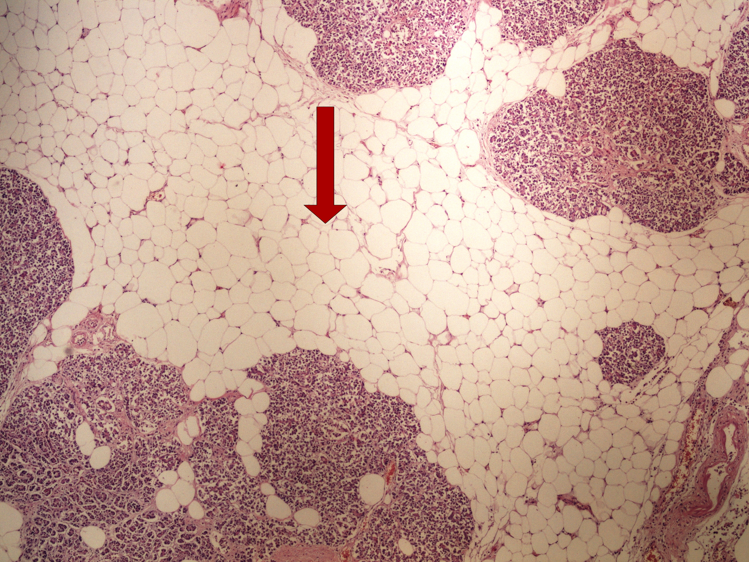 Preparát č.5 a č.6 - tuková atrofie pankreatu