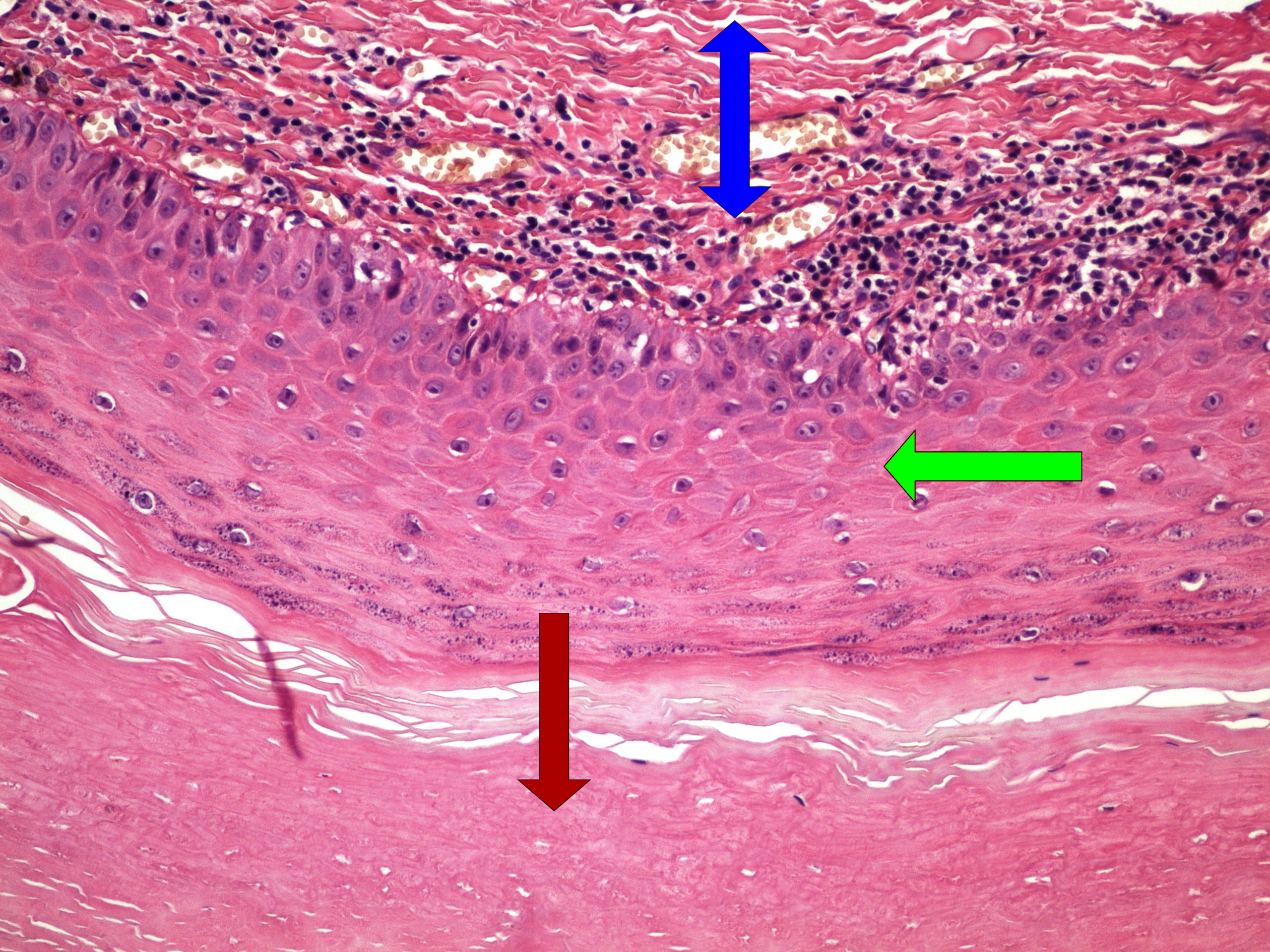 - vrstva bazálních buněk (charakt. pro hyperplazii)