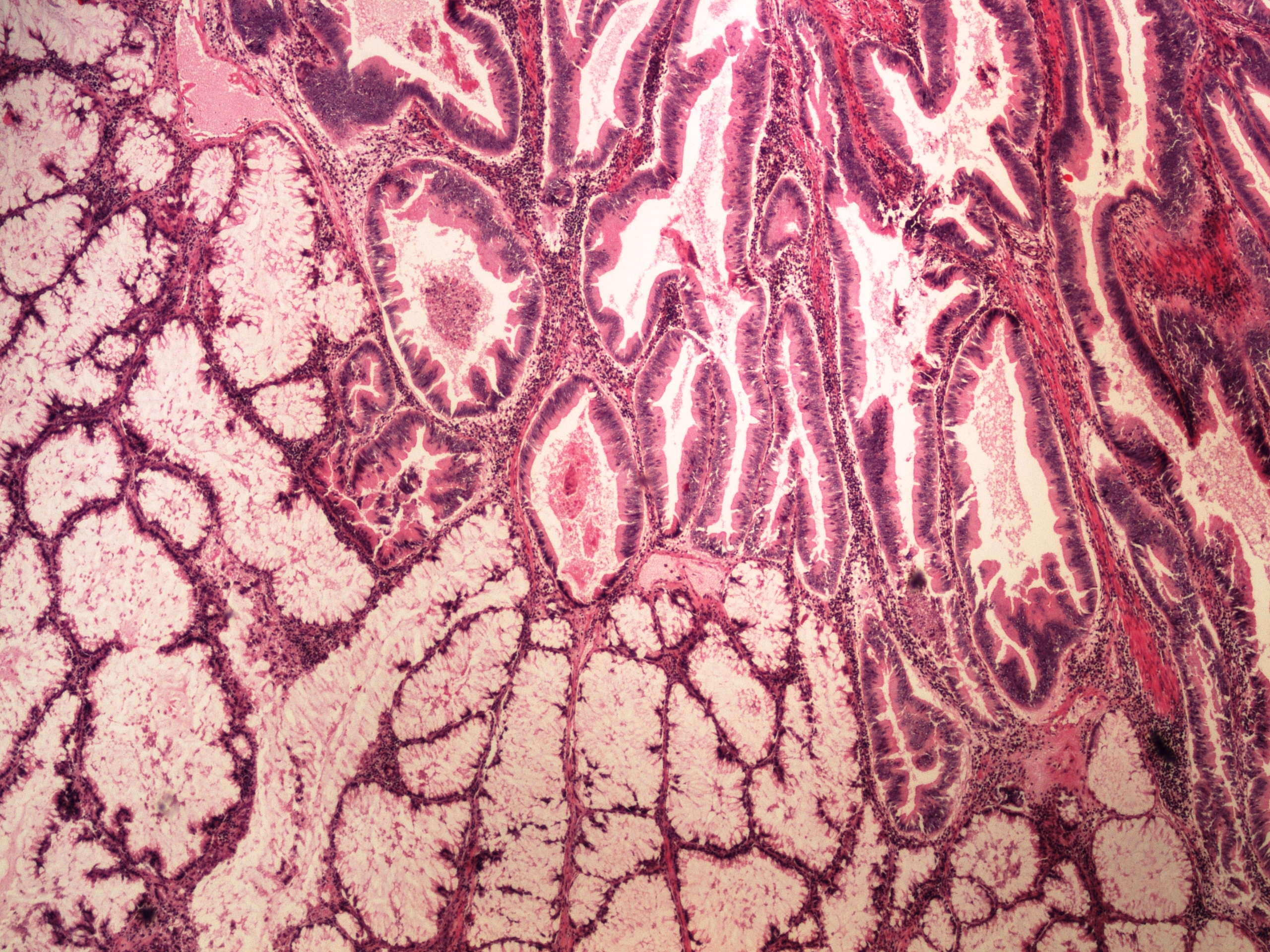 Preparát č.1 a č.2 - tubulovilósní adenom tlustého střeva